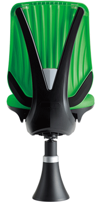 AURUS(アウラ ス)の基本構造は、下から上に向けて大きくそそり立つ「V字」の背フレームと、適度な柔軟性を発揮する三次元立体構造の背シート形状により、従来のパーラーチェアでは不可能だったきめ細やかな動きで体を支えることが可能になりました。縦に幾重にも彫り込まれた蛇腹(じゃばら)状のシートは、アコーディオンのように横にも伸びる特性を持ち、同時にこの深い溝は空気の循環層となり、疲労やムレの原因となる熱や空気を効率よく循環させる役割を持っています。※AURUS Solid(背ソリッド仕様)の構造説明